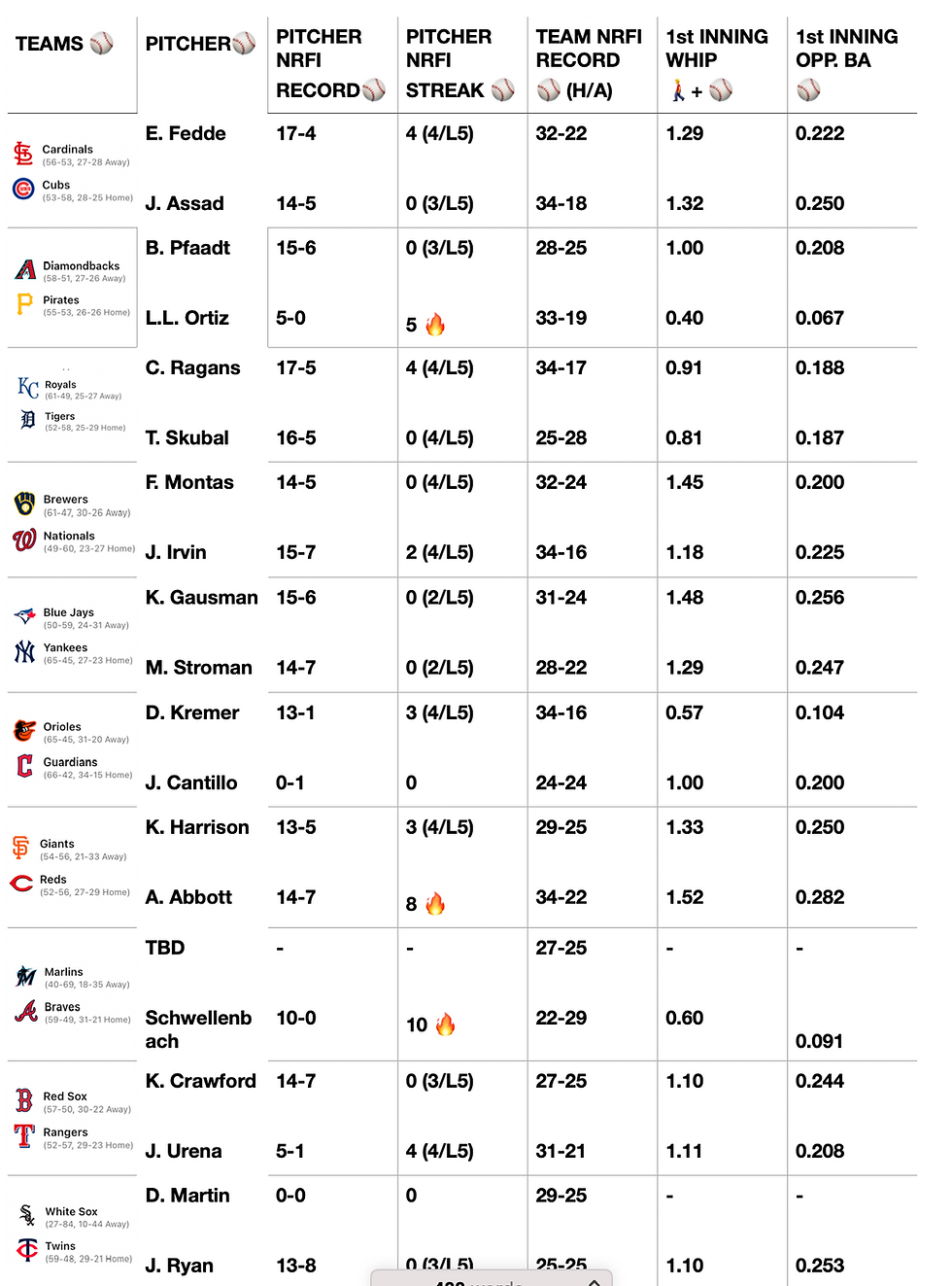 8/2 NRFI CHEAT SHEETS ✍️ schleytommy21Aug 2, 20241 min readRated NaN out of 5 stars.Find the rest of the sheet and my plays 📲https://dubclub.win/r/TommyLocks21/
